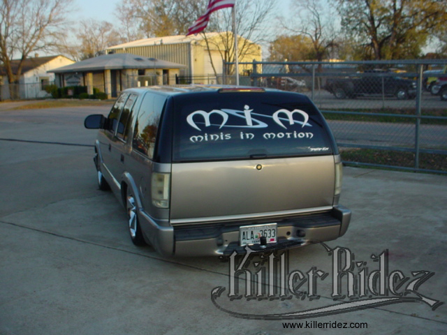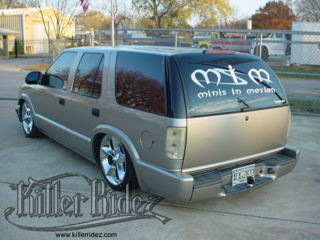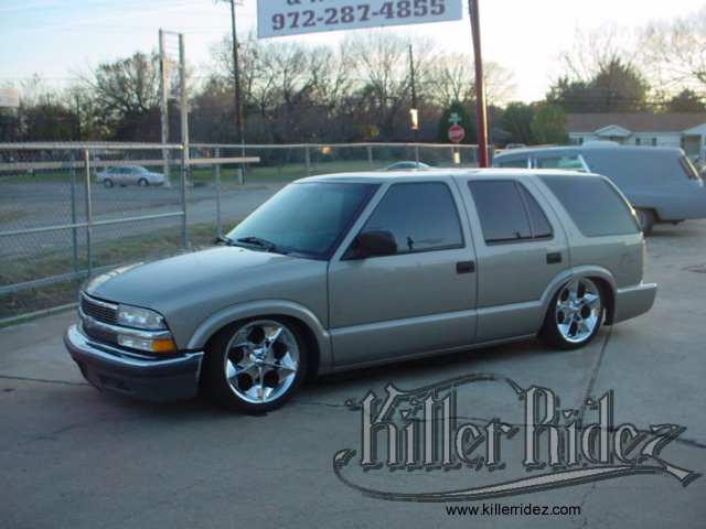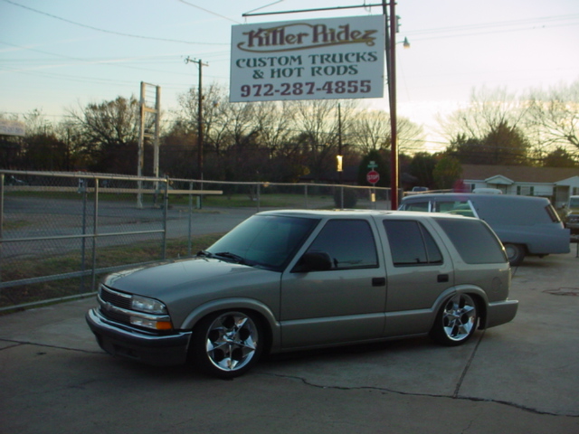 2000 S-10 BLAZER THIS 2000 BLAZER WAS BROUGHT IN TO TOTALLY RE-DO THE REAR AIRRIDE SETUP!!! A NEW 3-LINK SETUP WAS BUILT ALONG WITH A LARGER NOTCH TO LAYOUT ON 20S!!! |