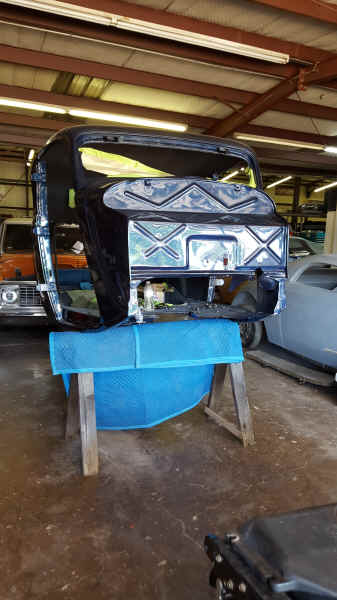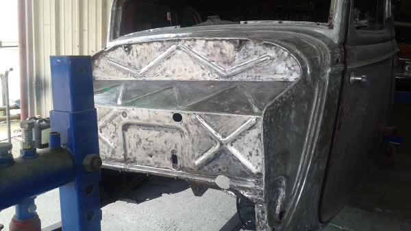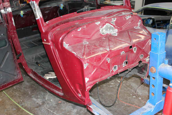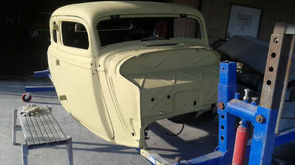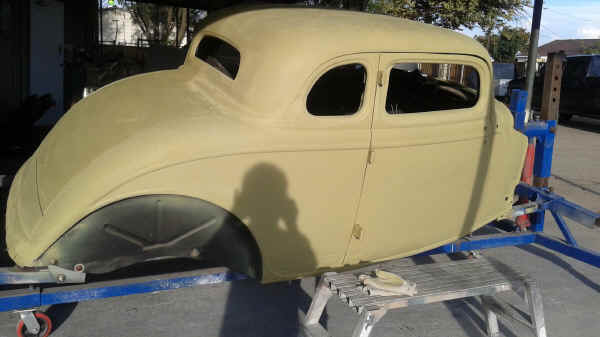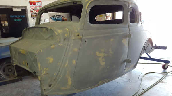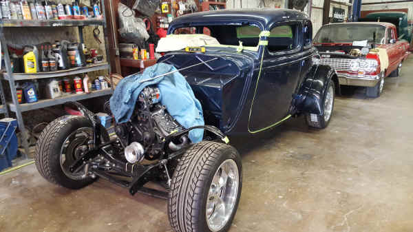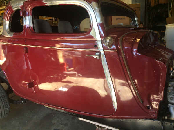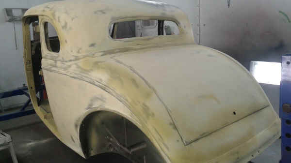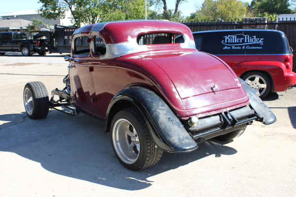 1934 FORD 5 WINDOW COUPE THIS ALL STEEL FULL FENDERED 1934 ORIGINAL FORD COUPE WAS BROUGHT IN FOR COMPLETE PAINT AND BODY!!! WE STRIPPED THE OLD BODY DOWN AND REWORKED EVERY PANEL!!! WE THEN SLICKED THIS BABY OUT AND REASSEMBLED THIS HOT ROD!!! SOME FEATURES OF THIS BAD BOY ARE A CHOPPED & FILLED ROOF, FLATHEAD AND A 5 SPEED!!! |