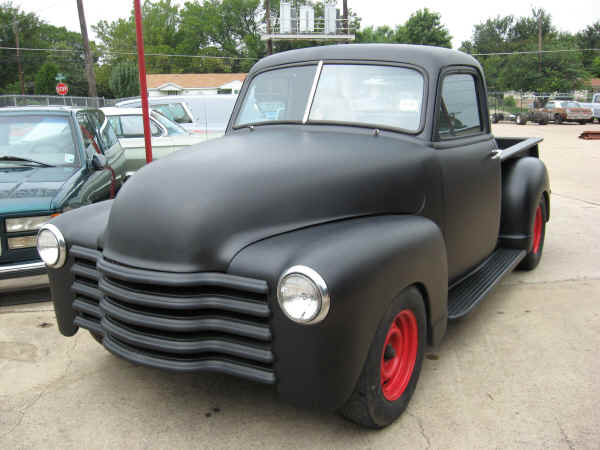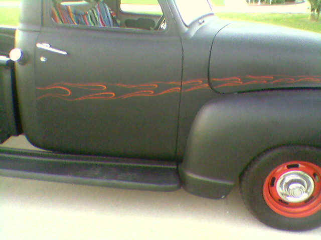 1950 CHEVY P/U THIS 1950 CHEVY TRUCK WAS BROUGHT IN TO BAG THE REAR, BODYWORK AND SOME FLAT BLACK!!! THE RESULT IS JUST WHAT DAD WOULD OF WANTED!!! COOL CLASSIC STYLING!!! IN THE FUTURE WE WILL ADD AIRRIDE THE FRONT!!! |