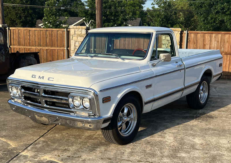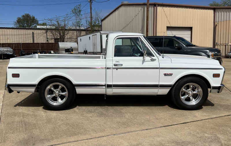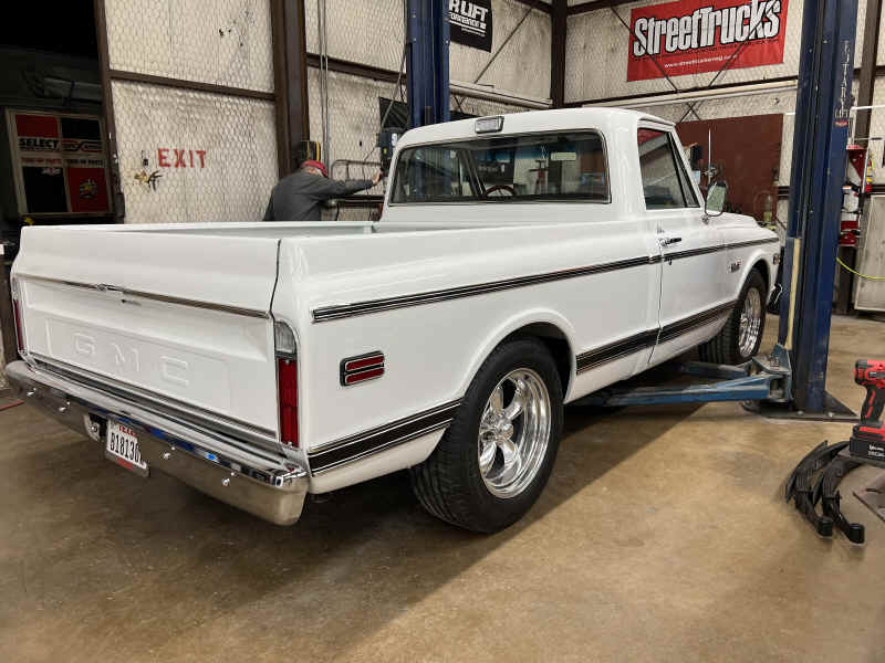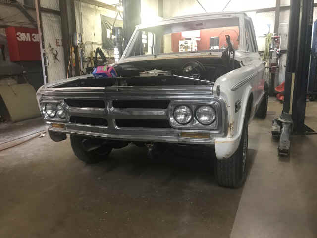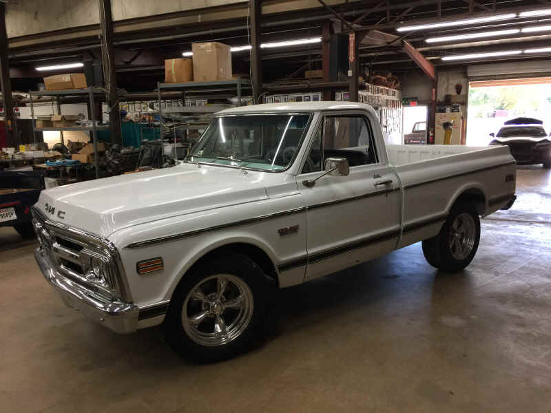 1970 GMC THIS 1970 GMC WAS BROUGHT IN FOR A COMPLETE MAKEOVER!!! IT WAS SHORTENED FROM LONG TO SHORT BED, SENT THE FRAME OUT FOR POWDERCOAT, REPAIRED THE RUST, PAINT AND BODY AND REASSEMBLED!!! FEATURES INCLUDE FLAMING RIVER COLUMN, VINTAGE AIR, AMERICAN AUTOWIRE HARNESS AND 2-4 DROP!!!