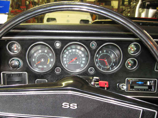 1970 CHEVELLE THIS 1970 CHEVELLE WAS ORIGINALLY BROUGHT TO US TO INSTALL A NEW DASH, GAUGES, RADIO, STEERING WHEEL, RE-DO THE SEATS AND A FEW MISC ITEMS!!! WE ALSO PULLED OUT THE TIRED 396 AND DROPPING IN A 454 H.O. CRATE ENGINE!!! WITH 425 HP AND 500 FT, THIS WILL REALLY PUT THE MUSCLE BACK IN THIS MUSCLE CAR!!! |