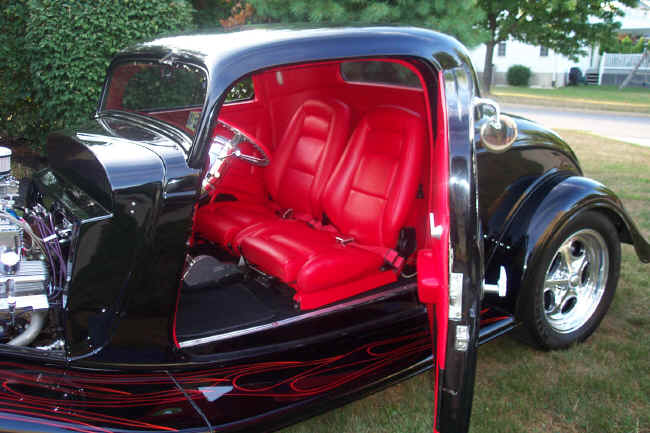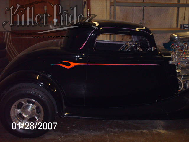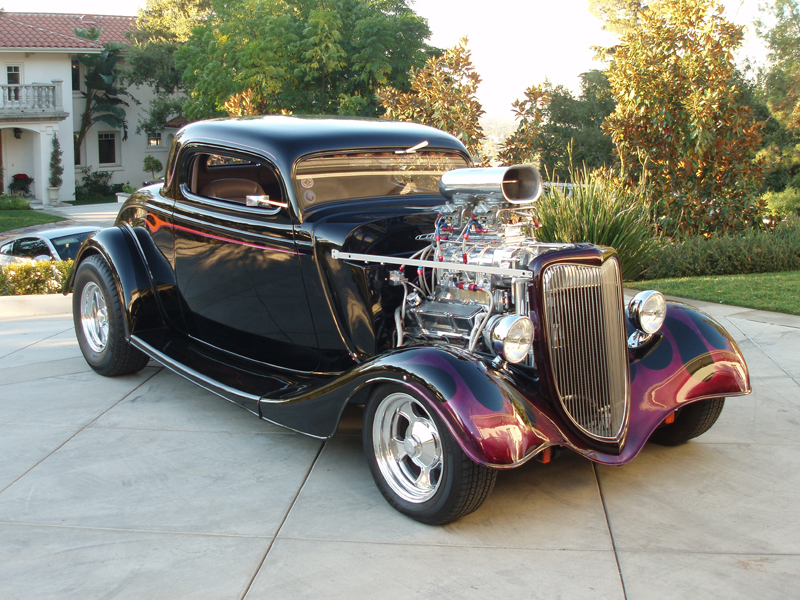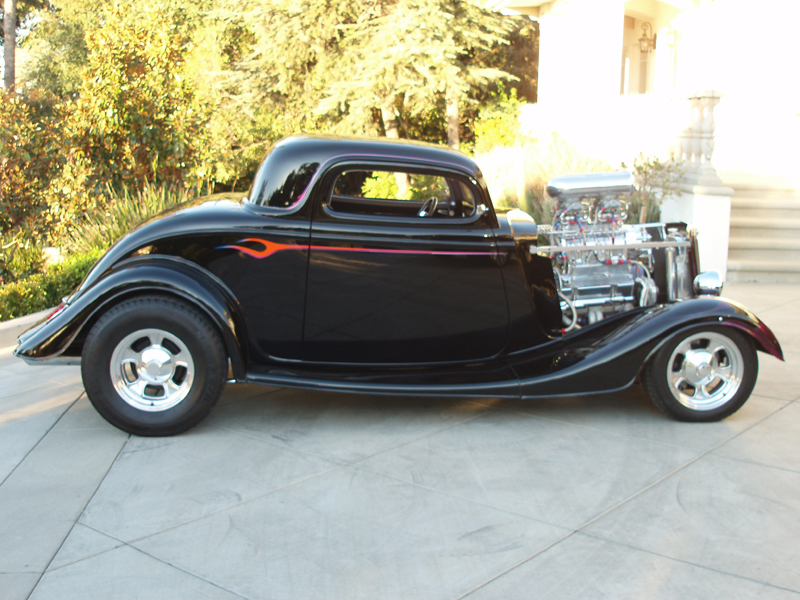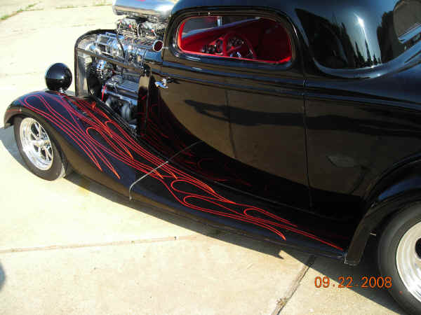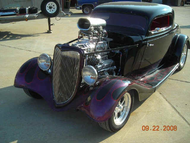 1934 FORD COUPE "LITTLE BLACK BETTY" WE FRESHENED UP THIS WEIAND BLOWN 1934 FORD COUPE A FEW YEARS AGO!!! NEW ITEMS INCLUDED INTERIOR, GAUGES, SHIFTER, COLUMN, STEERING WHEEL, HEADLIGHTS, VALVE COVERS, GAS TANK COVER AND WHEELS AND TIRES!!! STRIPING WAS DONE BY THE "INTERNATIONALLY KNOWN ALMOST FAMOUS" DIRTY OF DALLAS!!! |