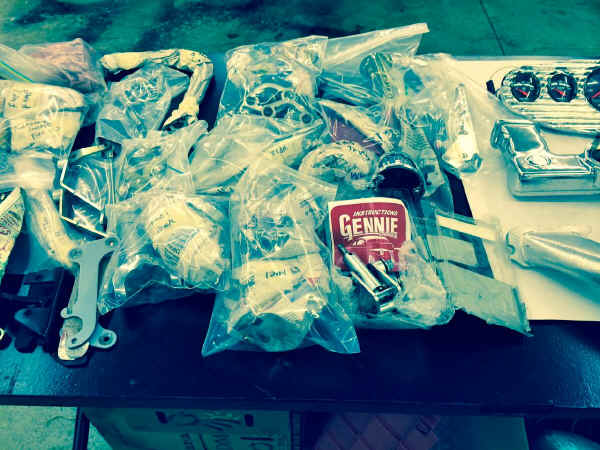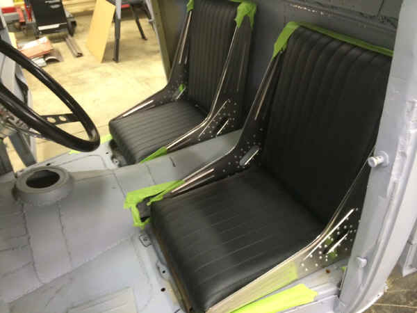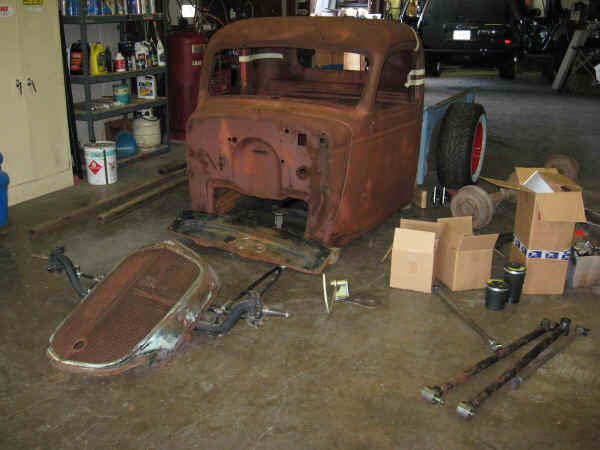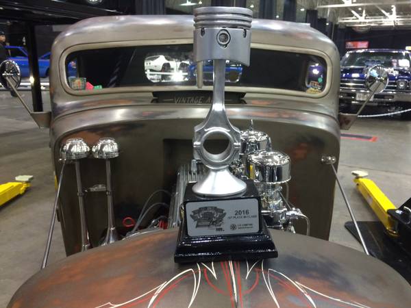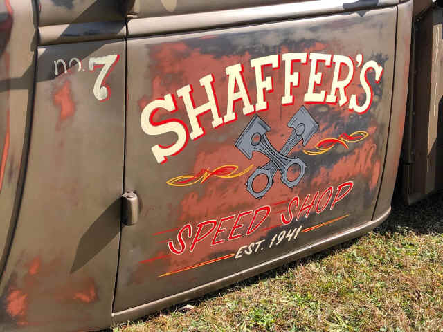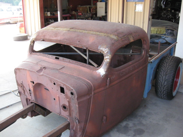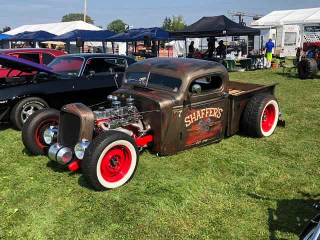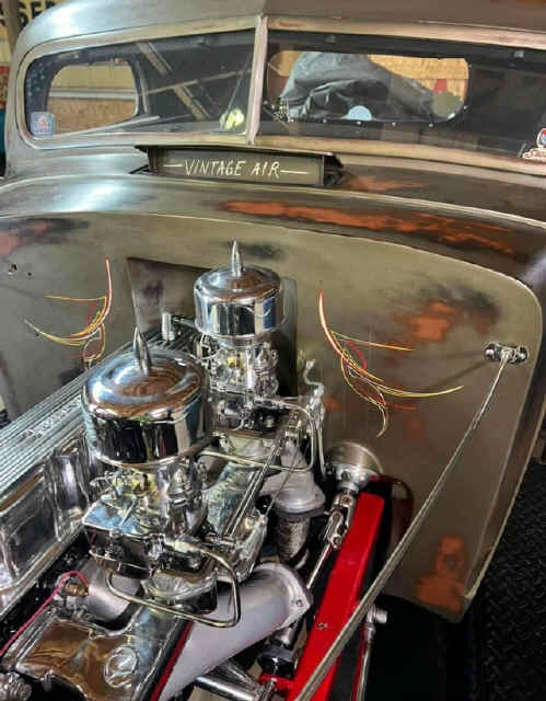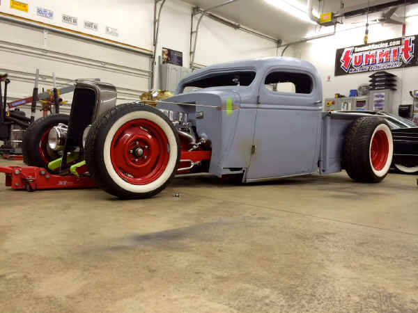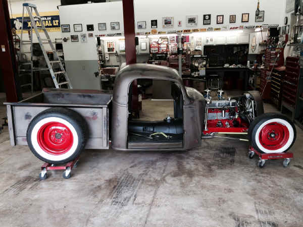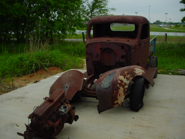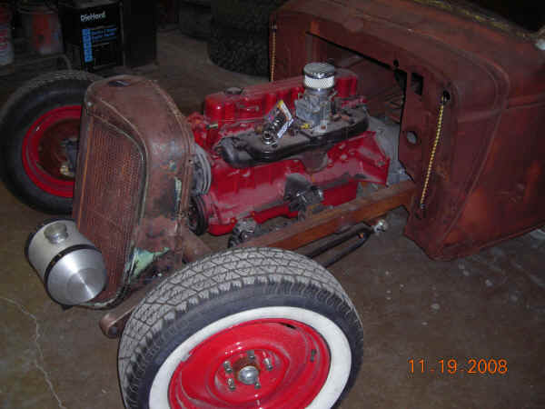 1941 CHEVY P/U THIS 1941 CHEVY P/U CAB AND FRAME WERE PICKED UP BEHIND AN OLD BARN!!! THE BODY CONSIST OF A '41 CHEVY CAB, '36 CHEVY 1 TON (BEER TRUCK) GRILL AND DASH AND A '53 FORD BED!!! THE RUNNING GEAR IS A 1969 250 CHEVY STRAIGHT 6, TURBO 350 TRANNY AND 9" REAREND FROM A 1959 FORD GALAXY!!! THE FRONT SUSPENSION IS A CLASSIC 6" DROP TUBE AND THE REAR IS A COMBINATION OF A SUICIDE DOORS & PETE & JAKE'S 4 LINK WITH FIRESTONE AIRBAGS!!! WE CHOPPED THE TOP 8 1/2", ALONG WITH CHANNELING IT DOWN OVER THE CUSTOM BUILT FRAME!!! IT ROLLS ON 15" & 17" WHITEWALLS!!! |