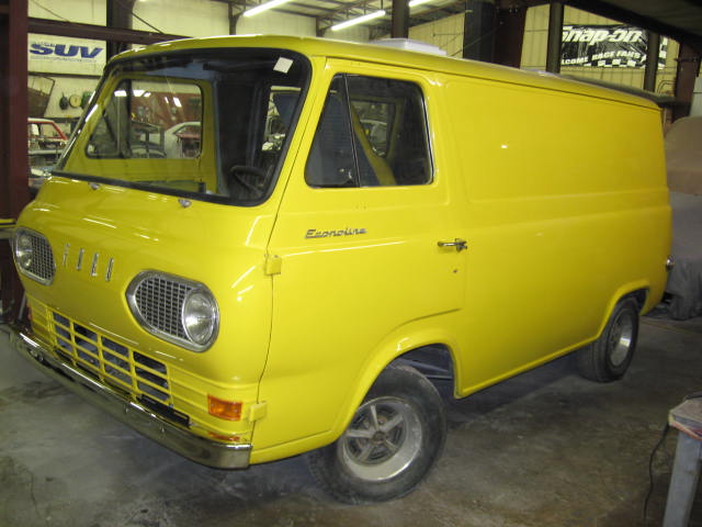 1964 FORD ECONOLINE VAN THIS 1964 VAN WAS BROUGHT IN TO COMPLETELY REDO!!! ITEMS ON THE RESTORATION LIST INCLUDED BLASTING ALL OF THE OLD PAINT/RUST OFF, RUST REPLACEMENT (over 150 individual pieces were made), REBUILD OF THE DRIVE TRAIN, PAINT AND BODY AND A NEW INTERIOR!!! ALL OF THE CHROME WAS REDONE AND VINTAGE AIR WAS INSTALLED!!! |
